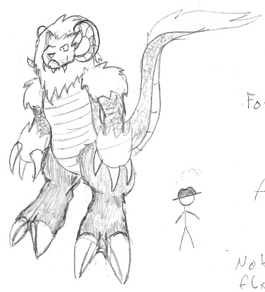 ![]() Landscape painting. After I did the first set of paintings, somebody in my class suggested making life-sized paintings of the three beasts. I think you can see why I wasn't too keen on that idea. (Acrylic on canvas, actual size 40" X 30") ![]() Old sketch. ![]() Rough notebook sketch compared to an xkcd character. In this version, I decided to make its arms scaly instead of furry. ![]() Cute baby chimera! |