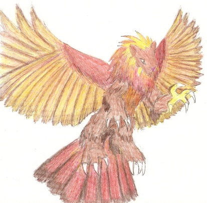 ![]() Little dude riding a griffin through a forest. Acrylic on canvas, actual size 40" X 30". ![]() Old sketch. I drew the image too low on the paper, and couldn't draw the left wing and right tail. ![]() A xerox of the main image, colored with pencils. This color scheme didn't stick very long. |