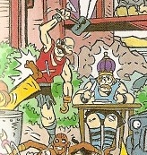 As if the two guys acting like rabbits weren't enough, the third guy can't tell the difference between giant sugar cubes and bars of gold. |