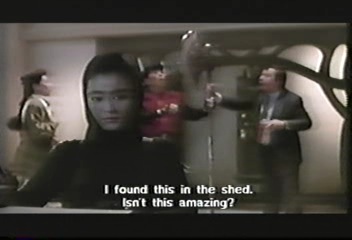 ![]() | One really obnoxious thing about this scene I can't show you is how ridiculously movey everyone is. It's like the director is off stage going "Kazuo, you and Akiko keep passing each other. Emi, whenever you come near somebody, start following them until somebody else comes by you. Taguchi, randomly walk around the room like you're drunk. Asuka? Eh, run in circles." |