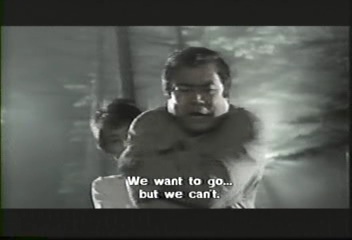 ![]() ![]() | This part makes me laugh. I can't imagine what's going through Shingo Yamashiro's head as the director's telling him to act scared and cover the most ridiculous puppet ever (which he does a pretty slapdash job of). |