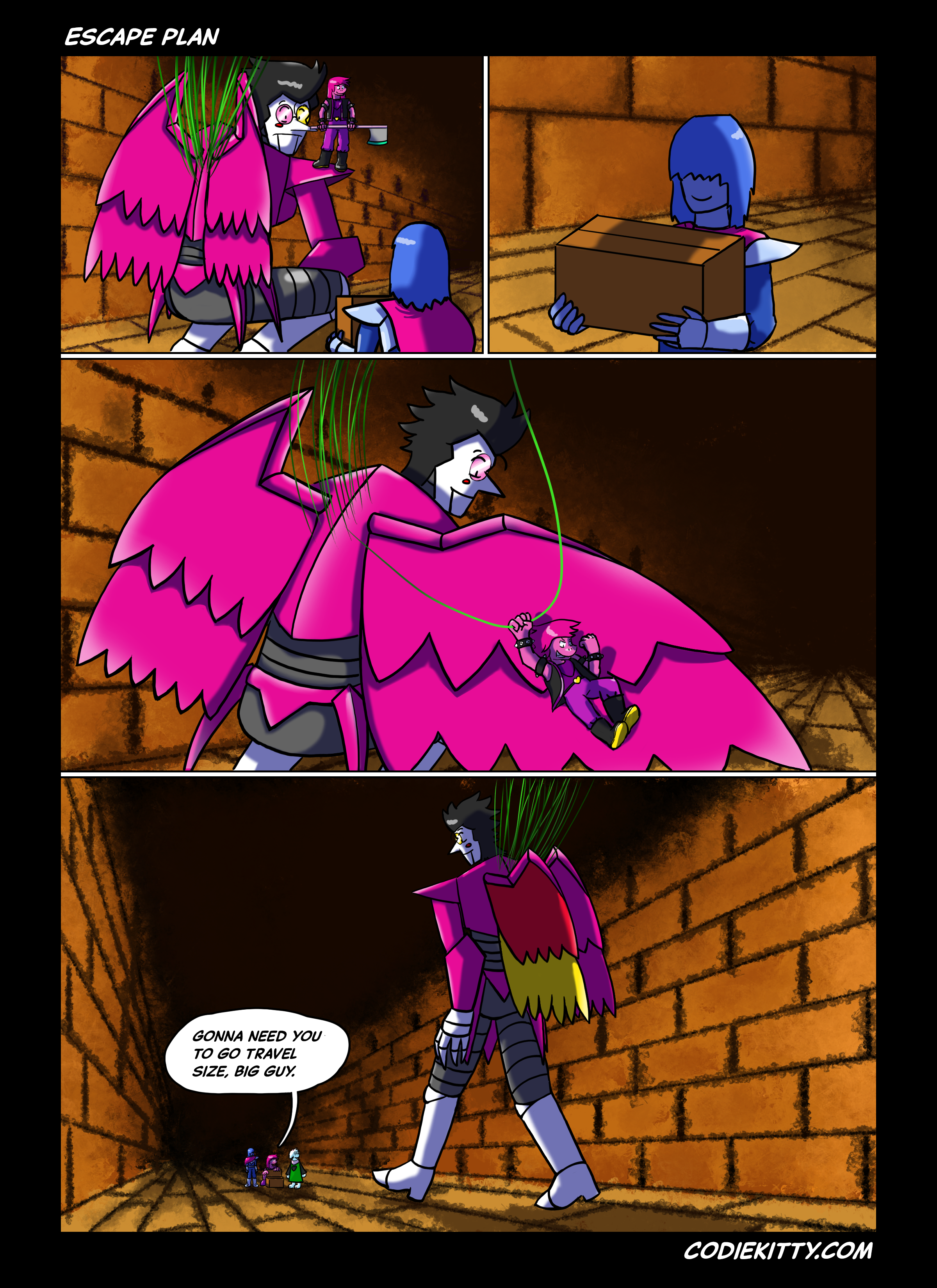 The books on the shelf are mostly based on various No Starch Press books I have around my work station. The real books are all the same height but, well, it's just boring to draw books all the same size. Eventually it delved into random crap and the issue of Catfancy is because I drew the books before I planned the titles and had to figure out something that would be that thin. And the Berserk volume is both because it's on my mind at the moment, and foreshadowing a meme I want to do but might save until Chapter 3 releases and Deltarune memes are "in" again.
