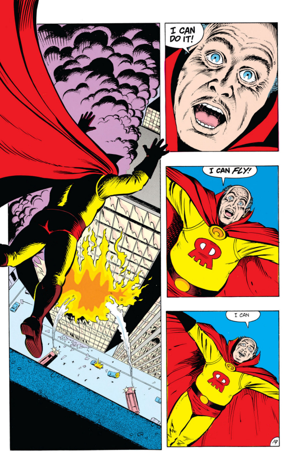 Buddy, meanwhile, has a run-in with the Red Mask, an aging supervillain who's dying of cough-up-blood-itis and has decided he's going to end his career with one last hurrah before fulfilling his greatest wish. The Red Mask talks like he has a storied history, but from what I could gather he was created for this comic. Before you ask "Wasn't the Red Mask the persona the Joker adopted during the chemical plant robbery in The Killing Joke?" that was the Red Hood. DC loves their Red Face-Covering-Item villains.