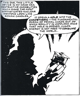 When Vertex uses the third Chaostructor to destroy Axis Mundi, he appears to be looking at the reader when he says "Bye."