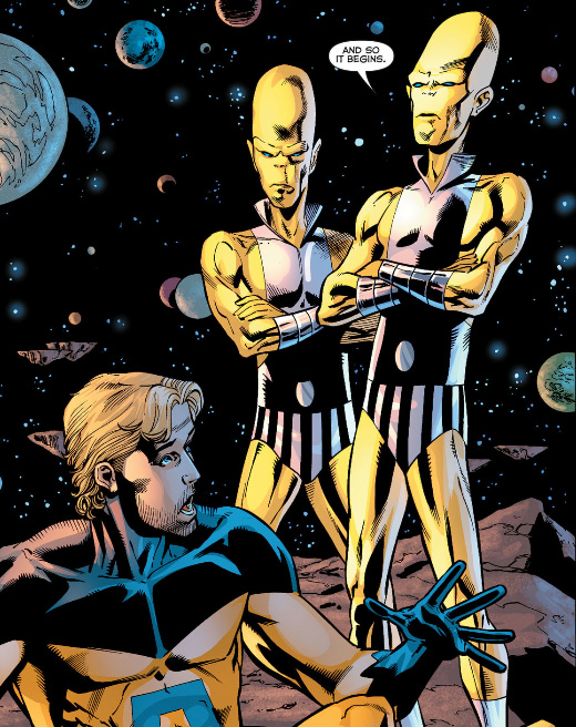 Trano and Zaarn appear in 52 but are never mentioned by name. Zaarn appears to have only been named in Strange Adventures #184, which I've only been able to find... questionable methods to read that I won't link to here. In that comic they're straight villains, but Morrison retconned them into allies and when Buddy brings up their past treachery they basically say "Oh, that was all just a ruse, we're actually on your side."