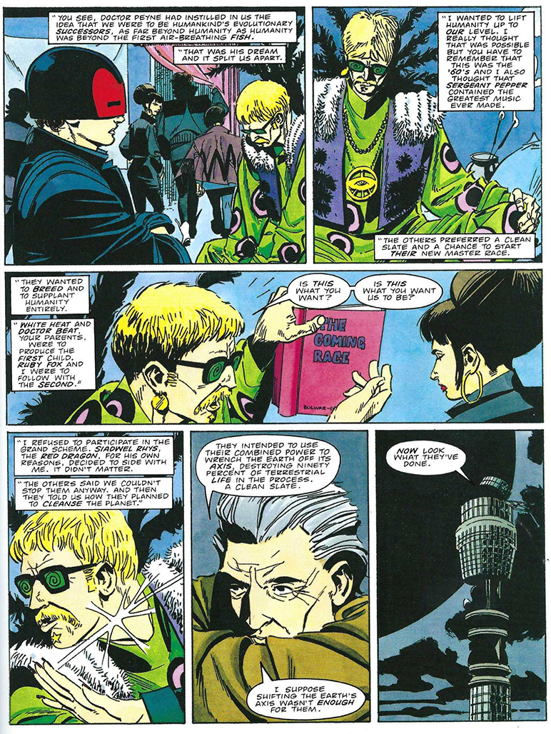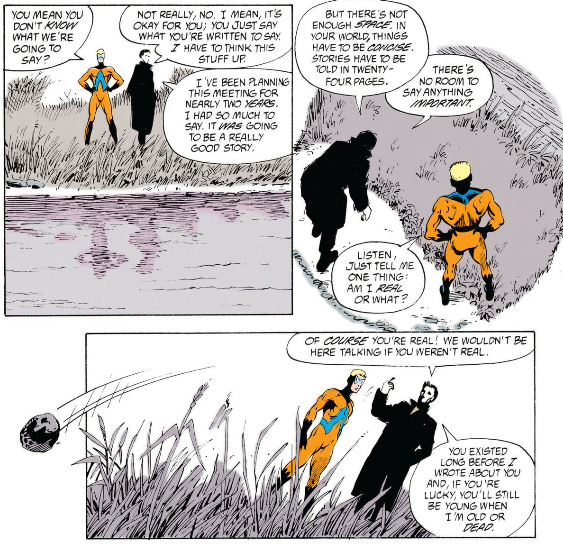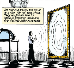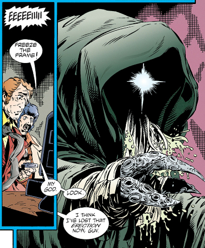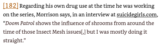 For this part, I highly recommend you watch this video on Morrison's philosophy if you haven't already, or rewatch it if you need a refresher. In particular, take note of the parts on Morrison's musings on space and time and purpose, and J.M.E. McTaggart's A and B theories on time. And not to sound like a broken record but again, Grant Morrison accepts all pronouns and doesn't care what anybody calls him/her/them.