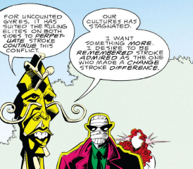 In Zenith Peter St. John's superhero code name was Mandala, and what is a mandala but an artsy fractal? And his codename being a symbol of how everything is connected plays into what caused the breakup of Cloud 9. The team came up with a plan to ascend to their "rightful" place as gods and crush the humans under them, but St. John wanted to elevate humans to their level with only Siadwell Rhys taking his side. Some of St. John's actions suggest his motives weren't entirely altruistic, but he still saw the tygers and the humans were connected.