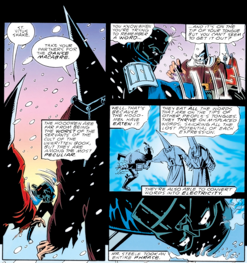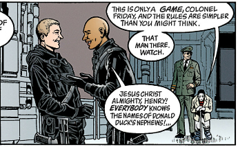 And far too often, The Invisibles dips into being offensive just for the sake of being offensive, and I say that as a Berserk fan. Another member of the Invisibles - albeit from a different team than the main one - is a voodoo magician channeling Papa Gede, who goes by the moniker Jim Crow...