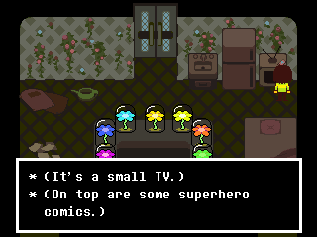Asgore has a small stack of superhero comics sitting on his television.