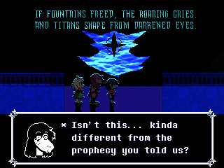 Heck, maybe the final prophecy changes depending on if you play pacifist, violent, or Snowgrave.