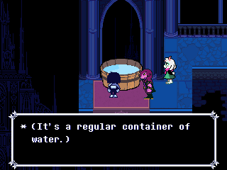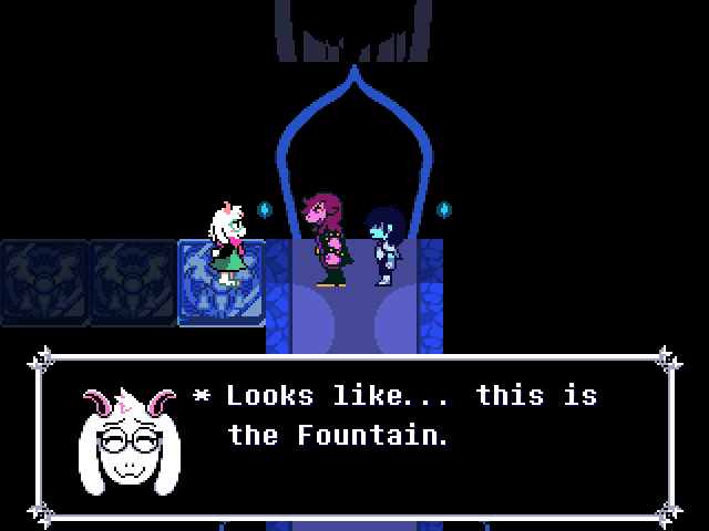 Chapter 4 opens with "DELTARUNE" in a water texture - in fact, the very same water texture used in the background of the vessel creator at the start of the game and the Dark Fountains - which then crystallizes and shatters. When you continue the chapter, the Delta Rune itself is shown instead. A lot of people, myself included, probably thought this was the water freezing into ice, but through the course of the chapter we learn it's glass the water turns into.