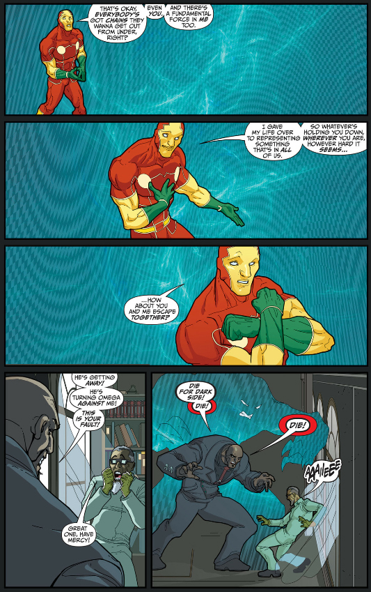 I managed to find one more person who noticed the similarities between Animal Man's ending and To Boldly Flee's.