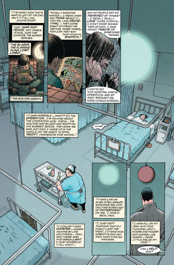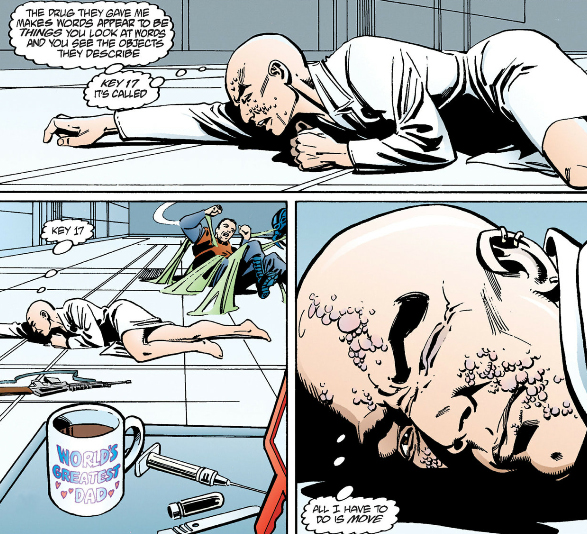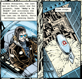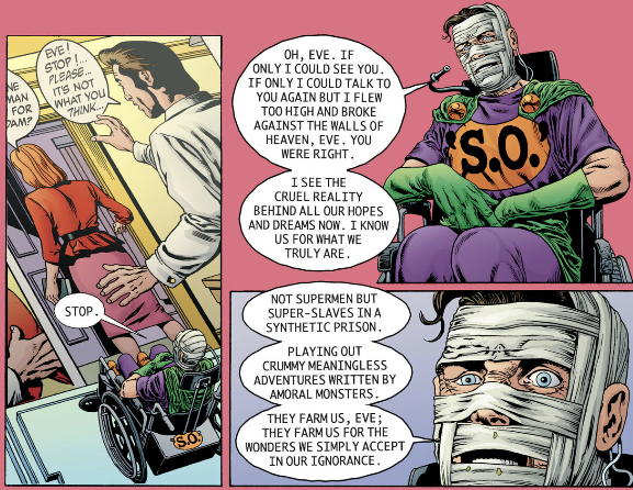 The Filth occasionally cuts to this Superman proxy who was left insane and wheelchair-bound after he left his comic and entered Heaven.