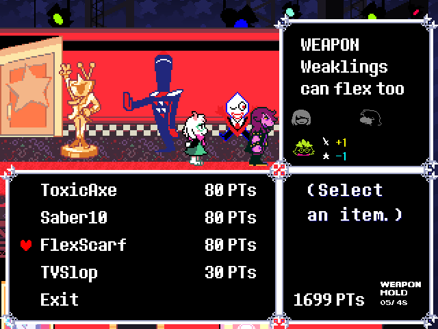 A weapon for Ralsei called the "FlexScarf" is available Chapter 3.