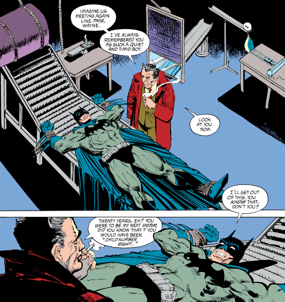 Shock therapy is how Jane's spirit is ultimately broken in the Candlemaker's Hell, and Maxie Zeus is undergoing shock therapy when Batman encounters him in Arkham Asylum.