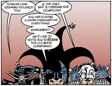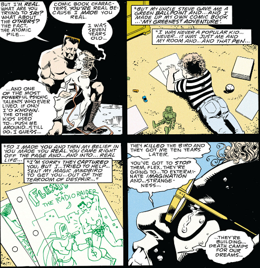 So it's you, playing a video game of characters in a dream world, playing a video game. Are we at Flex Mentallo layers of realities yet? If you don't count the comic in Flex's reality that Flex came out of, I guess so.