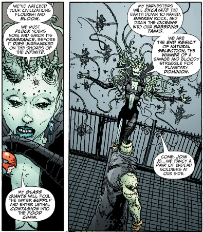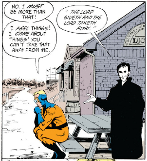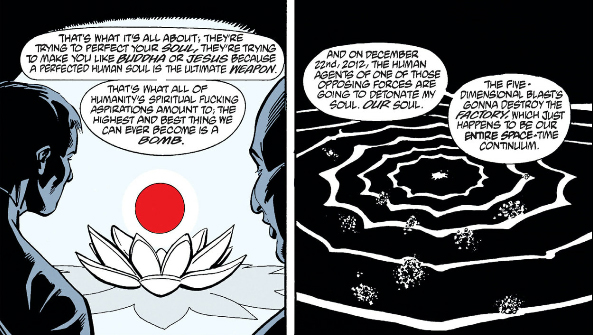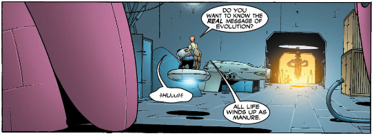 If you read my little interlude here you'll know that another recurring theme in Morrison's work is that nobody really has control over their own lives, and that contrary to what MatPat thinks, affecting another person's life is not "disrespecting their autonomy" because nobody has autonomy. You cannot exist in the world without affecting another person's life and telling somebody that's a bad thing they need to minimize if not stop doing altogether is how you, at best, get hikikomori. Or as Luthor realizes in All-Star Superman...