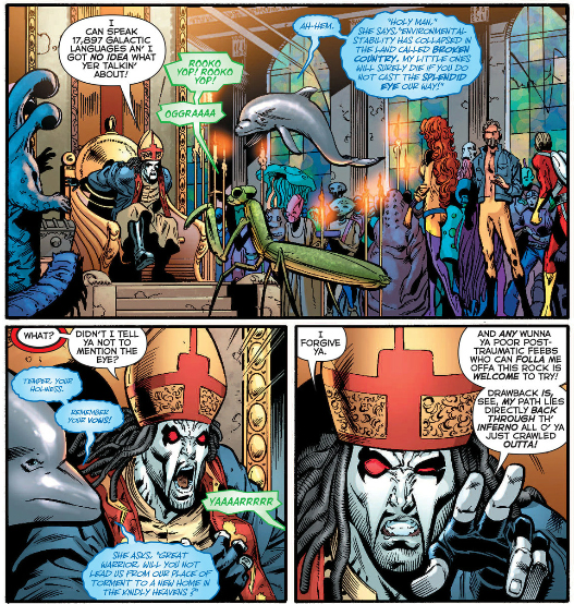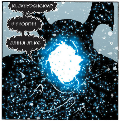 And in Seven Soldiers, Neh-Buh-Loh's speech balloons are clusters of black bubbles.