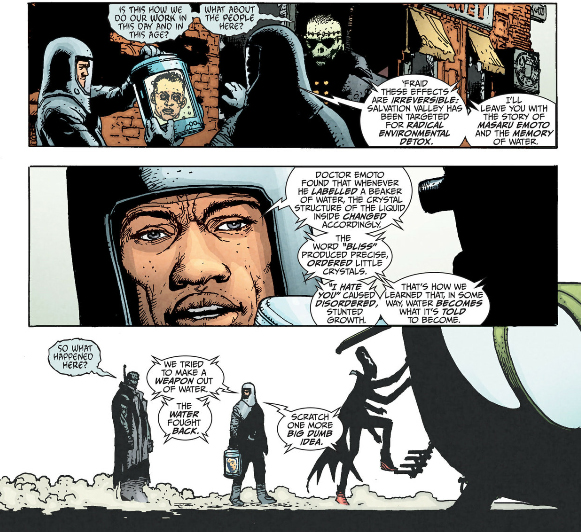 Water symbolizing changes in reality is a common theme through Morrison's books. Caulder's Think Tank was literally a pool of water that could reshape the world. And over in Batman: The Return of Bruce Wayne water was involved in each of Bruce's time jumps, each revision of his character, until he finally comes back around as Batman.