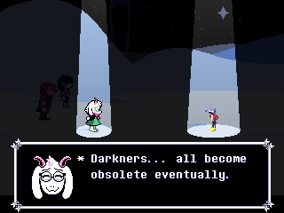 Ralsei lays down the sad reality of existence to Tenna, and even though he says "Darkners" it's true for all of us, really.