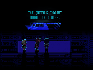 When I made that comment about having a "field day" if Asgore really did run over Dess, that's because after the other six soldiers get their shots against the Sheeda in, their queen, Gloriana Tenebrae, is finished off by Bulleteer hitting her with a car. I wasn't going to give this away until I remembered another scenario with a queen and an exploding car.
