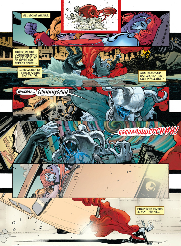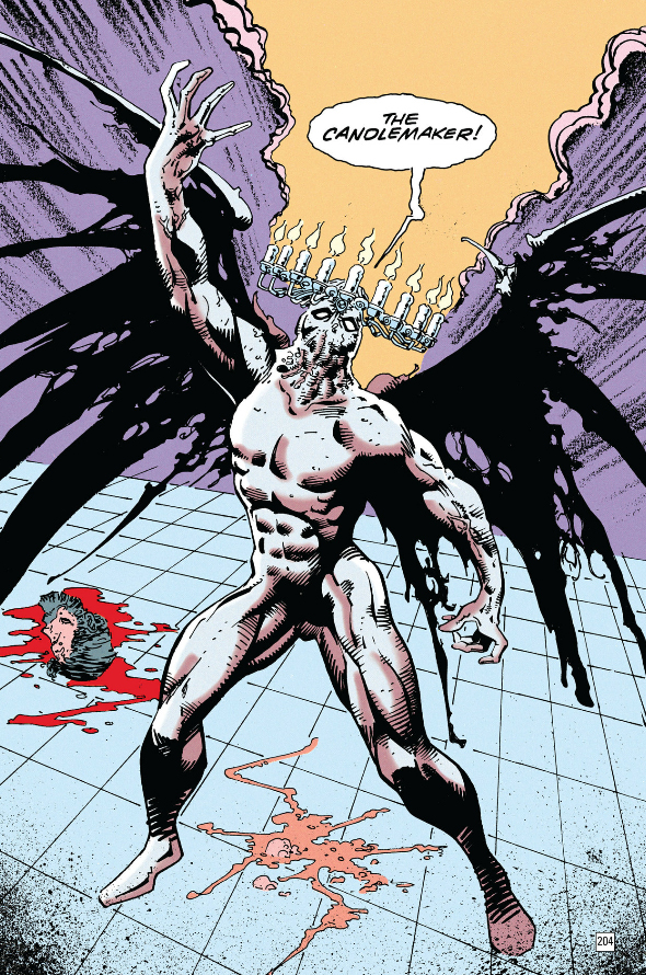 During the big battle in astral New York, the Candlemaker smashes through a window and rides two chunks of glass to the ground. There's just something odd about the detail of it having its feet on the glass I wanted to point out because it was clearly a deliberate choice, but I don't know what it's supposed to represent.