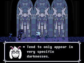 So what am I getting at here? The Dreamtime and J.M.E. McTaggart's B Theory on time are one and the same. The past, present, and future all exist simultaneously but you can only see that for realities you exist above. And these panes of glass tell the future because they're crystallized pieces of the Dreamtime, the sea of potential Deltarune emerged from.
