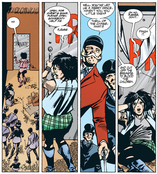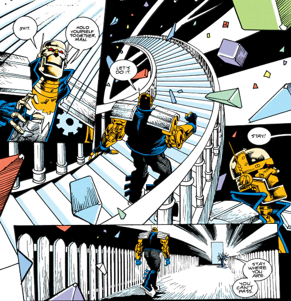 But she's soon overwhelmed and the Doom Patrol and Brotherhood of Dada join forces to... well, you can check back in Part 2 for spoilers. By the way, I was calling the Fifth Horseman of the Apocalypse "Conquest" in reference to The Binding of Isaac, but in Grant Morrison: The Early Years Callahan calls him "Oblivion." I also thought the Doom Patrol being attacked by the Fifth Horseman of the Apocalypse was just a Morrison non-sequitur, but it all came together when I learned through Callahan's book what "dada" is French for.