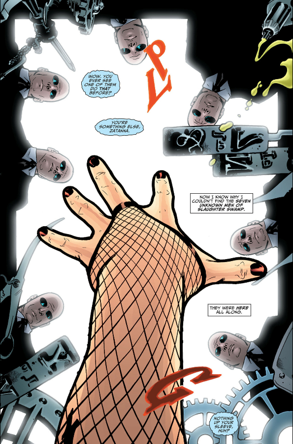 When the gang returns to the Titan, Ralsei mentions how it's "been here the whole time." When Zatanna contacts the Seven Blatant Clones of Grant Morrison Unknown Men of Slaughter Swamp, she says she couldn't find them before because "they were here all along."