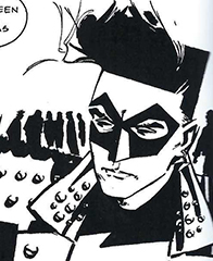 I wanted to post this next one before but felt it too much of a stretch, and this is the perfect place to put it. When Bane breaks Bruce Wayne's back in Knightfall, Bruce passes the mantle of Batman over to Jean-Paul Valley who, uh, is totally nuts. Once Bruce recovers he retakes the title of Batman, and Valley adopts the moniker Azrael after the angel of death.