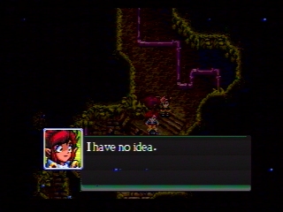 I once compared ideal story development to watching somebody knit a sweater. Pier Solar's story is like somebody sitting you down in front of a repetitive, meandering puppet show while they go knit the sweater behind a door. Occasionally he'll come back out holding some yarn of the next color he's going to incorporate into the sweater, stop to assure you that, no really, this is going to be awesome! and then retreat back into his room and leave you to the puppet show. After many, many hours of this, he busts out of the door, throws something that would baffle the Once-ler in your face, then runs away while you try to decipher what you've just been handed. After much pondering, some people will then decide it can't be a piece of clothing and call it a work of abstract art. But all I'm seeing is the work of somebody who didn't know how to knit a damn sweater.