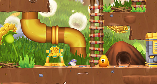 While the first Toki Tori was about collecting eggs in bite-size levels by using Lemming-style consumable skills, Toki Tori 2 reduces the hero's abilities to stomping the ground and chirping to focus on environmental puzzles throughout one large world. The puzzles are just daunting enough, and the reliance on local wildlife to solve them lends a certain life to the game world. Also interesting is how the game tells it story solely with visuals, even if it doesn't make it very clear what the special frogs are supposed to be; ancient guardians of the floating island to be rallied when something threatens it? Convenient macguffins to work toward? Gratuitous Team Fortress 2 references?