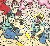 As if the two guys acting like rabbits weren't enough, the third guy can't tell the difference between giant sugar cubes and bars of gold. |