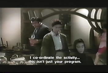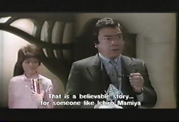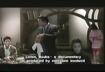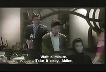![]() | One really obnoxious thing about this scene I can't show you is how ridiculously movey everyone is. It's like the director is off stage going "Kazuo, you and Akiko keep passing each other. Emi, whenever you come near somebody, start following them until somebody else comes by you. Taguchi, randomly walk around the room like you're drunk. Asuka? Eh, run in circles." |