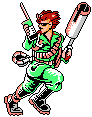 The first thing you'll notice is Ladd's left arm. Ladd did not lose his arm in a war and get it replaced with a clunky piece of machinery that probably weighs more than the entire rest of his body and has all its sensitive parts exposed for the bad guys to get shooty with. The truth was, Ladd Spencer did not have a robotic arm. "Bionic" was a misnomer. Even though the shot is much too clean, I think Ladd was actually supposed to be throwing the grappling hook, but the most he had was some launching tool strapped to his arm, which is what Rad used in the Game Boy Bionic Commando. Actually, I could even accept something like in the Worlds of Power novel where Jack Markson got his arm hacked off by ninjas, then got it replaced with a bionic arm that looked just like a normal one.